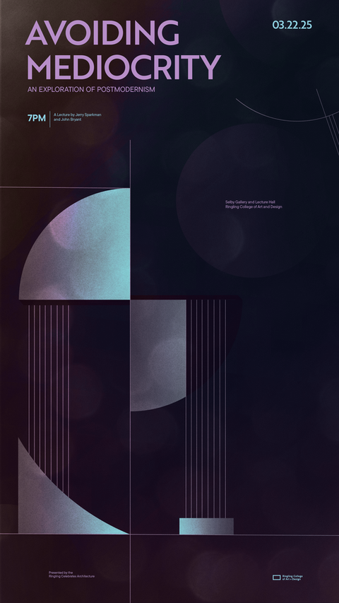 I did some preliminary research by analyzing and sketching attributes of the original architectural styles, finding typefaces, and laying it out on a modular grid. I then created all my assets in Illustrator and colored the posters in Photoshop. The animation was created in After Effects using mattes and trim paths.